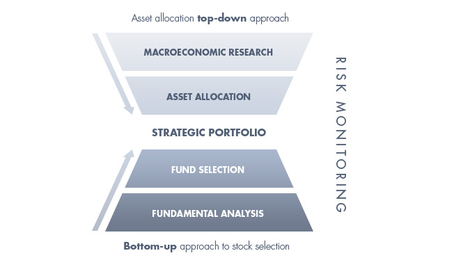 The management style is the method by which the investments are selected. In defining the choices we look at risks and opportunities from two standpoints: top down, by analyzing the macro factors that determine the evolution in markets and segments, and bottom up, by analyzing the dynamics of those companies whose shares and bonds are being assessed for investment.